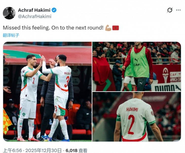 为了赶上在家乡举办的非洲杯,阿什拉夫放弃了手术治疗,选择风险更高的保守治疗方案,只为争取宝贵的恢复期。从拄拐领奖到替补复出,短短一个多月的时间里,他付出了远超常人的努力。当再次踏上赛场,感受熟悉的对抗节奏,帮助球队顺利晋级后,那句简单的“想念这种感觉”,成为了他坚守与期盼的最佳注脚。对这位东道主核心而言,非洲杯不仅是冲击冠军的舞台,更是向家乡球迷兑现承诺的战场。