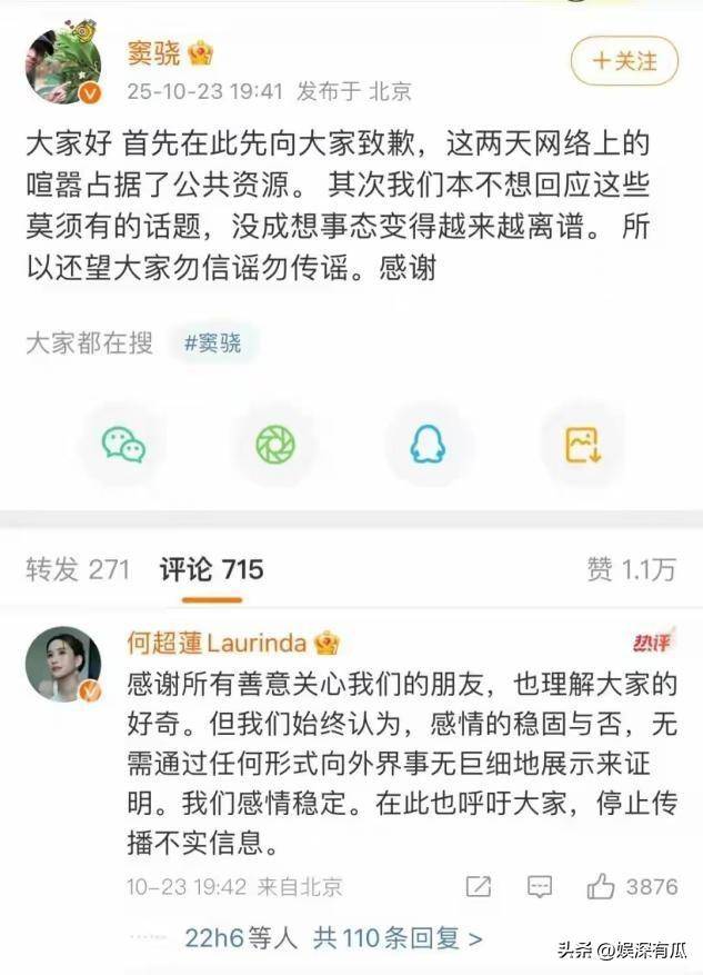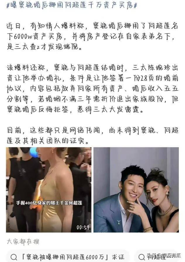 但这段时间,他们就一直没从热搜上下来过,先是网传的婚前协议,后又有人爆料窦骁挪用何家资产买房。