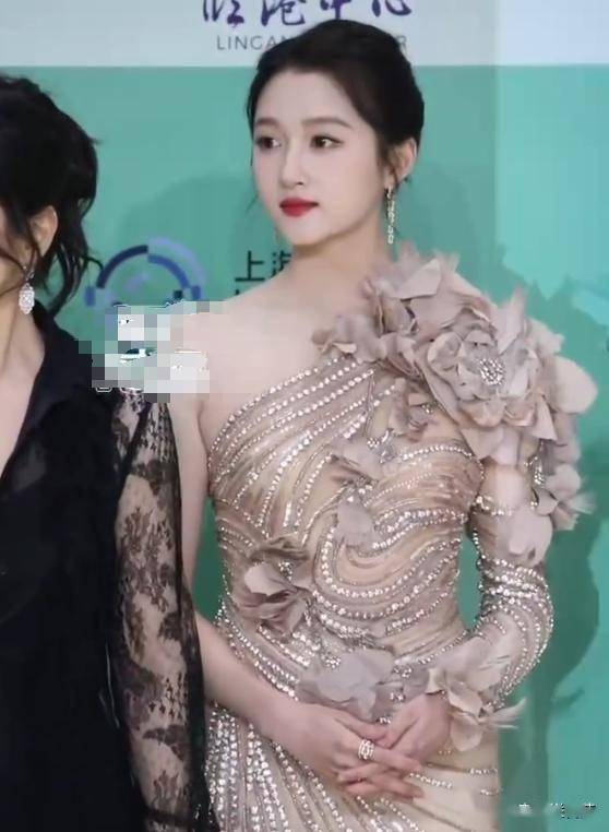 身穿ES高定裙,很凸显“大小姐”的气质,斜肩大花设计让她有一种人间富贵花的既视感。