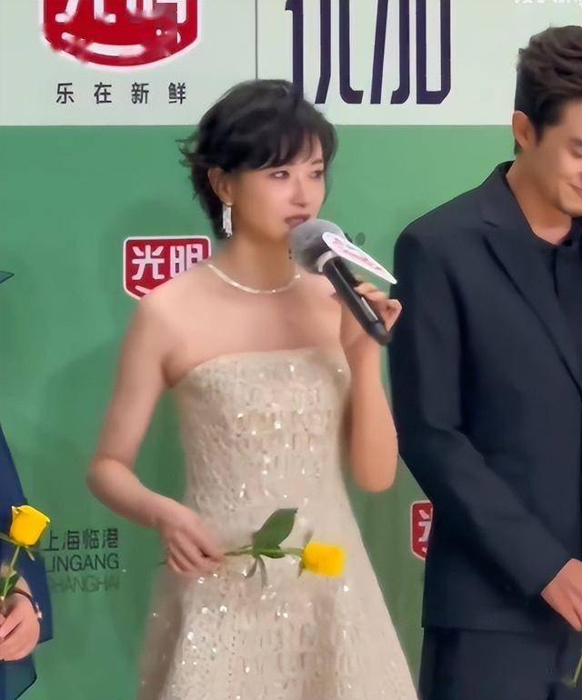 短发女神万茜,前一天是纯白抹胸长裙出镜,胸前的项链非常抢眼,在修身礼服的加持下,整个人熠熠生辉。