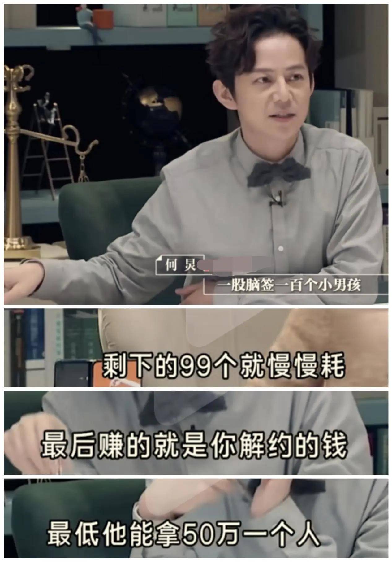 之前何老师就曝光过,行业内有些经纪公司很不道德,一签签约就签100个小孩,捧红一个就行。