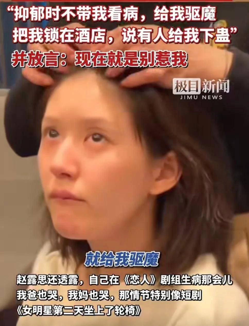 身体上压榨她,即便生病坐轮椅也要进组,不能耽误拍摄进度,不让去医院看医生,把她锁在酒店房间里“做法”。